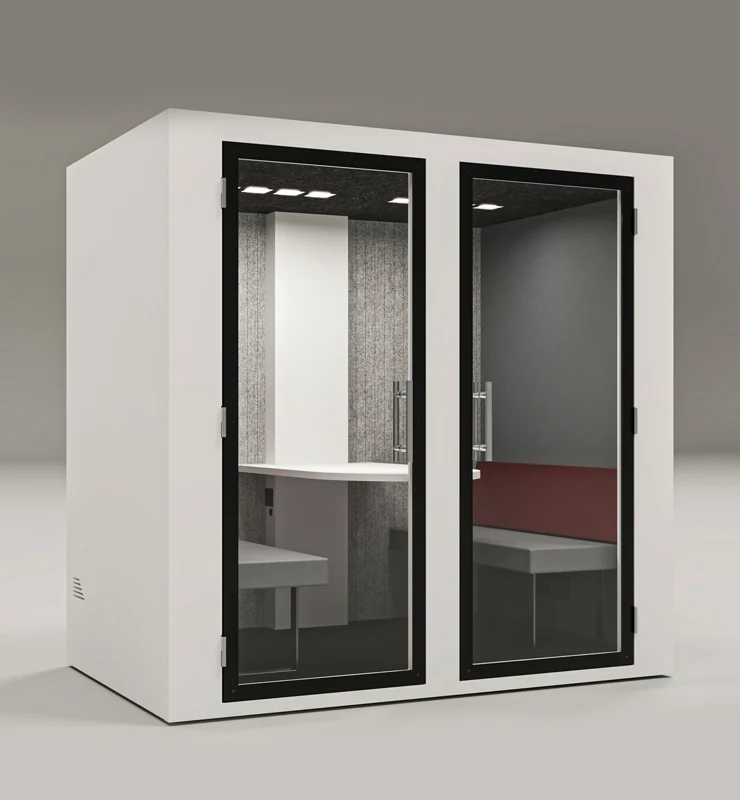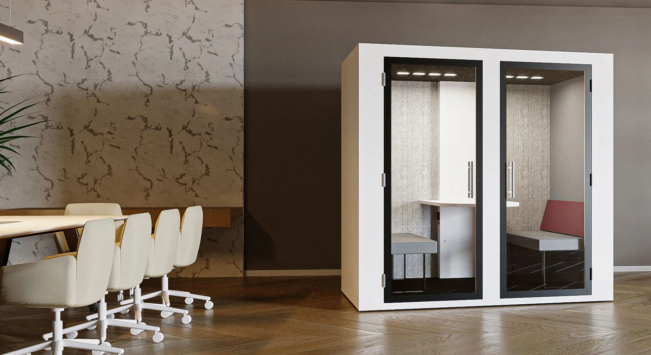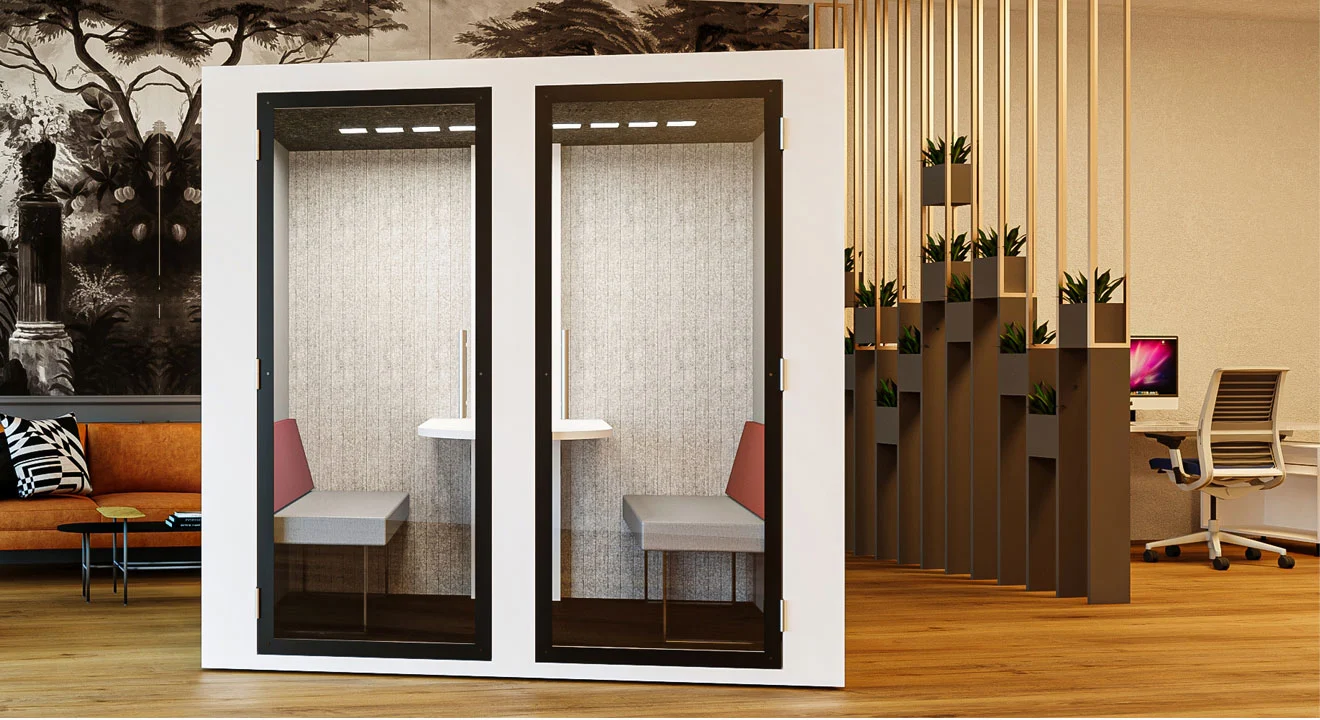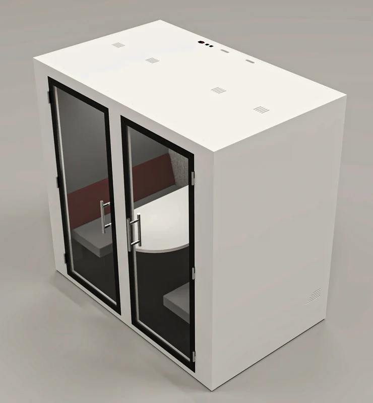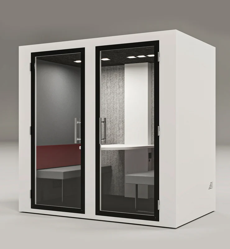 Com um design funcional e reservado, a Work Four foi concebida para dar resposta às exigências do ambiente corporativo, proporcionando o ambiente perfeito para reuniões em equipa, sessões de brainstorming ou conversas estratégicas. Esta cabine pode ser usufruída por quatro pessoas, oferecendo todas as funcionalidades essenciais que asseguram conforto e bem-estar.